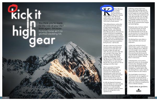The two typefaces used in this spread are very good at contrasting each other because there is an immediate difference. The Sans Serif typeface has no serifs and the Slab Serif typeface uses serifs. Since the title and description of the article are written in Sans Serif, the reader can easily identify where the title of the article ends and where the actual article begins. It is also good that the article is written in Slab Serif because it is good for formal writing.